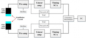 自2000年代初以來,Ce:LYSO已成為PET檢測器設計研究中最常用的閃爍體,因為它們在上述因素之間做出了很好的權衡取舍,持續需要更好的圖像質量,更短的掃描時間和更低的輻射劑量。 患者已經在正電子發射斷層掃描(PET)領域進行了持續的研究。PET掃描儀的設計特別具有挑戰性,因為它不應損害高空間分辨率,高靈敏度,高計數率功能以及良好的能量和時間分辨率 。 具有快速衰減時間特性的閃爍體一直是高能物理實驗,核物理和正電子發射斷層掃描所追求的輻射探測材料。 它們對于納秒級和亞納秒級的高計數率和時間分辨率是有益的。